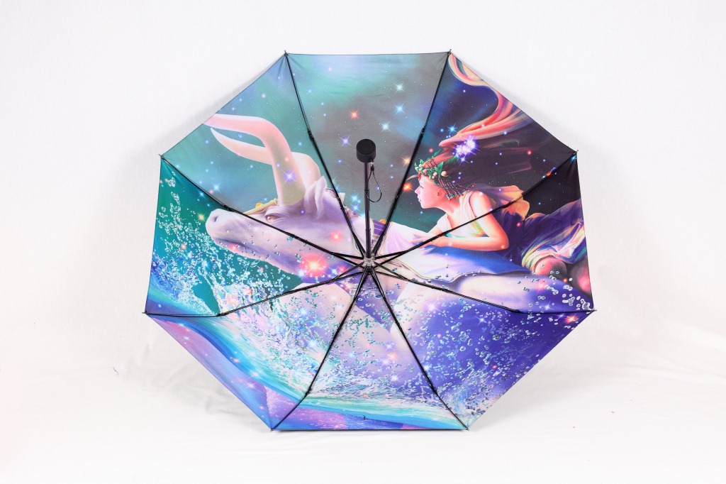 | Name: | Twelve Constellations Artwork printed 3 folding umbrella with black coated pongee fabric |