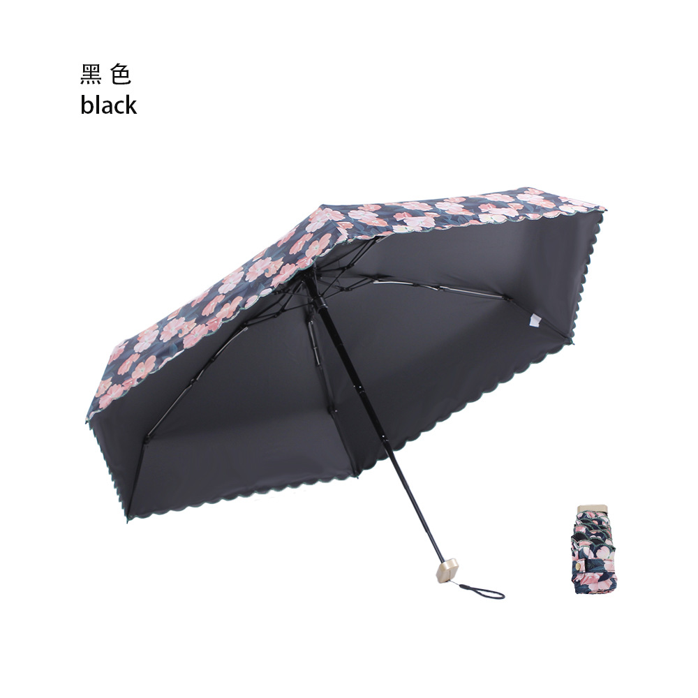 | Name: | Ultra light black glue embroidered flat six fold umbrella |